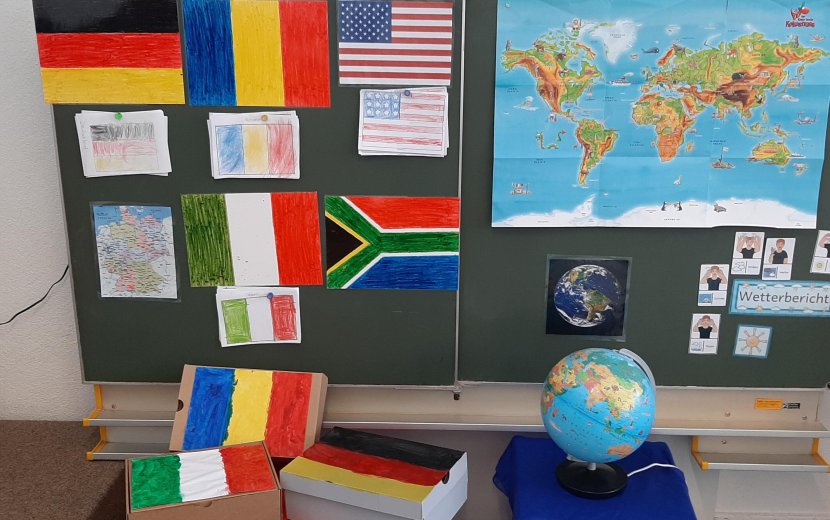 Anfang Januar hatten sich die Kinder auf eine spannende Reise rund um den Globus begeben. „Kann man mit dem Fahrrad nach Japan reisen? Wo leben eigentlich Zebras? Was essen die Kinder in England gerne? Wieso ist nicht überall auf der Welt gleichzeitig Tag und Nacht?“ waren nur ein paar der Fragen, die wir uns gestellt haben. Die Kinder lernten zudem verschiedene Sprachen kennen, indem wir typische Kinderlieder anhörten und dazu tanzten. Jedes Kind erhielt zu Beginn der Reise seinen eigenen Reisepass und durfte sich nach jeder Passkontrolle einen Flugzeugstempel abholen. Unsere Reise endete dann mit einem großen Fest. Verkleidet mit Outfits aus aller Welt erlebten wir eine Fasnetsparty voller lustiger Spiele, Tänze und jeder Menge Luftballons, Konfetti und Bonbons. Am Freitag wurden wir von den Altshauser Narren befreit und tanzten zusammen den alljährlichen Poppo-Tango. Was für eine glückselige Fasnet!