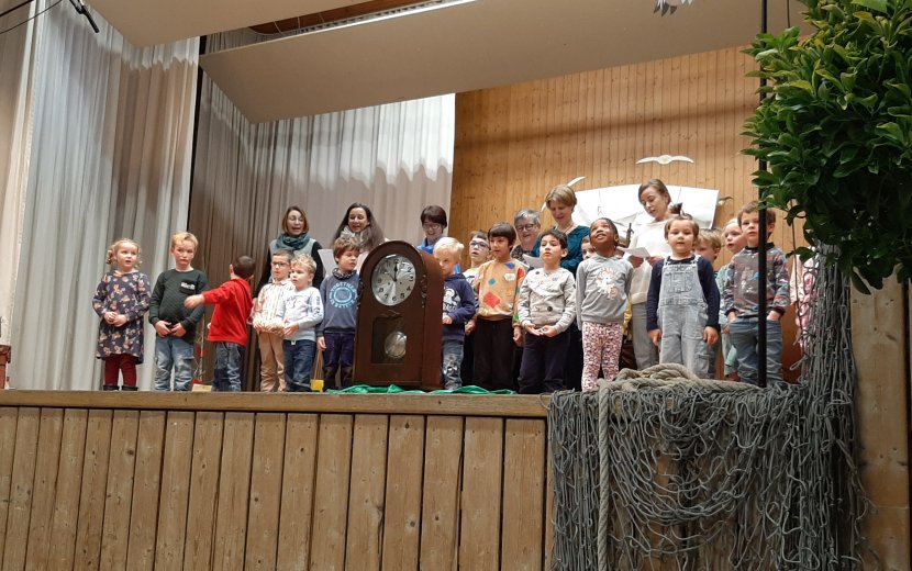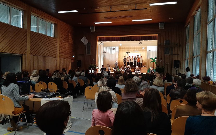 Wenn über 20 Lehrerinnen auf der Bühne ein „Hoch“ auf die scheidende Schulleiterin singen, 73 Kinder mit Liedern und einem Theaterstück Abschied nehmen und Lob, Herzlichkeit und Anerkennung der Inhalt aller Grußworte ist, dann hat man alles richtig gemacht. So durfte Heidi Doubek, die ehemalige Schulleiterin der Sprachheilschule Arnach der Zieglerschen vergangenen Freitag ihren Abschied genießen, auf ihre Laufbahn zurückblicken und die ein oder andere Träne der Freude und der Rührung vergießen. „Ich habe geguckt, dass wir vorwärts kommen. Nun lass ich neue ans Ruder, es macht Freude, eine Schule zu leiten. Das ist einfach schön. Ich lege Euch ans Herz: ein Kind entwickelt sich, wenn man die Stärken stärkt und die Schwächen dabei mitnimmt“, so Doubek in ihrer Abschlussrede.