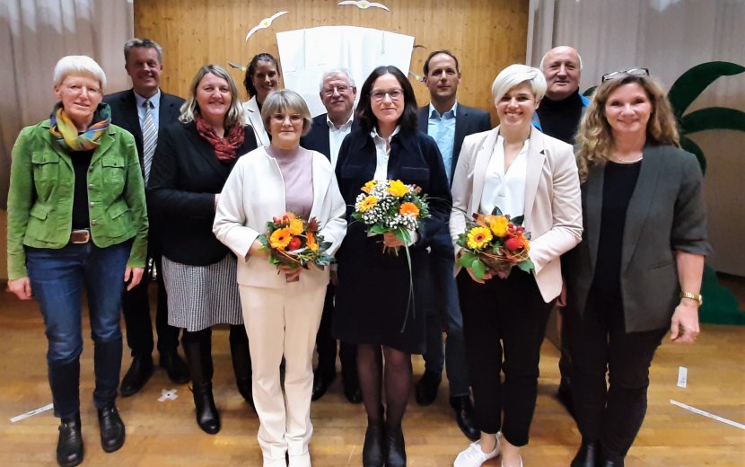 Abschied und Neuanfang in der Sprachheilschule Arnach der Zieglerschen: Heidi Doubek (mitte) übergab vergangenen Freitag offiziell das Ruder an Iris Kunzendorf (links) als neue Rektorin und Sandra Weder (rechts) als neue Konrektorin. (Foto: Sylvia Steurer/Bilderstrecke: Nicola Philipp)
