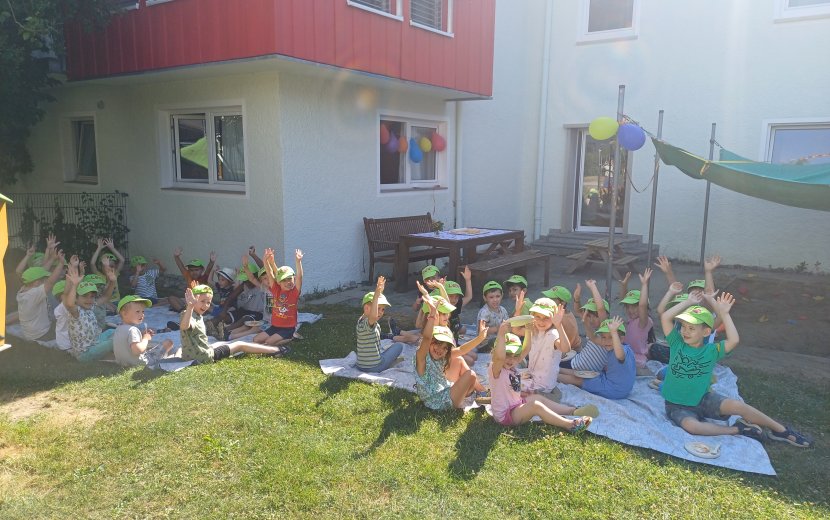 Zuerst fand am letzten Juniwochenende das traditionelle Kinderfest in Altshausen statt. Hier waren einige der Kinder sowohl am musikalischen Auftaktabend als auch am Umzug dabei. Am Kinderfest-Montag erlebte der gesamte Schulkindergarten den Luftballonstart und alle Kinder besuchten mittags den Rummel und die Zauberer-Show. (Mehr zum Altshauser Kinderfest lesen Sie hier).