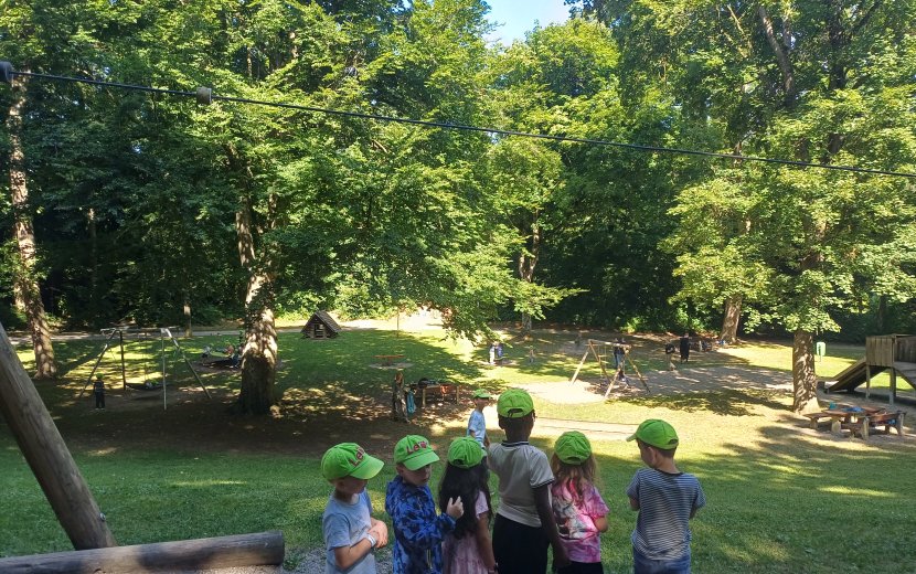 Am 10. Juli fand unser gemeinsamer Jahresausflug statt. Dieses Jahr fuhren wir mit Franitza-Reisen nach Bad Saulgau und erlebten dort einen herrlichen Tag auf dem tollen Waldspielplatz bei der Schillerhöhe. An verschiedenen Stationen konnten die Kinder unter anderem lustige Sockenwurfgeschosse sowie Papier-Hubschrauber basteln. Sie wurden natürlich gleich auf dem weitläufigen Gelände ausgetestet. Zur Mittagszeit gabs ein leckeres Eis und eine Tiergeschichte zum Mitfiebern. Müde aber zufrieden und glücklich fuhren wir nach einer weiteren Spielrunde schließlich wieder nach Altshausen zurück.