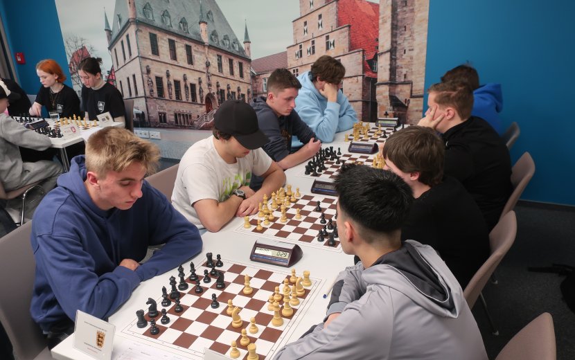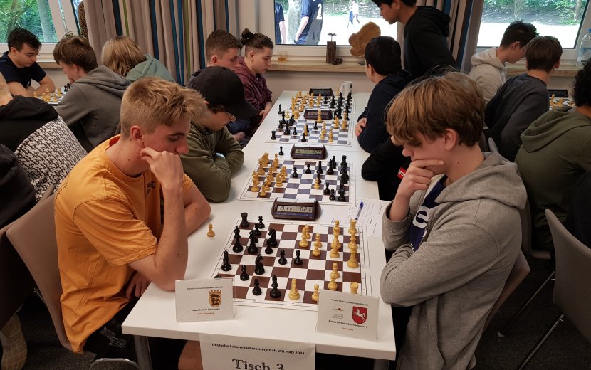 Von Samstag, 27.4.24 bis Sonntag, 30.4.2024 wurde die Deutsche Schulschach Mannschaftsmeisterschaft (DSSM) in der Wertungsklasse der Werk- und Realschulen (WK HR) in Osnabrück ausgetragen. Die Fahrt für die Mannschaft der Leopoldschule Altshausen ging bereits um 8:00 von Aulendorf nach Ulm los, von wo aus eine direkte Verbindung nach Osnabrück mit dem ICE bestand. Dort angekommen checkten alle ein und fuhren in die Altstadt, um diese zu erkunden. In der Jugendherberge Osnabrück, die eigens für die Meisterschaft angemietet wurde, pendelten bis zum Abend die 100 Jugendlichen der 20 Schulschachmannschaften ein.