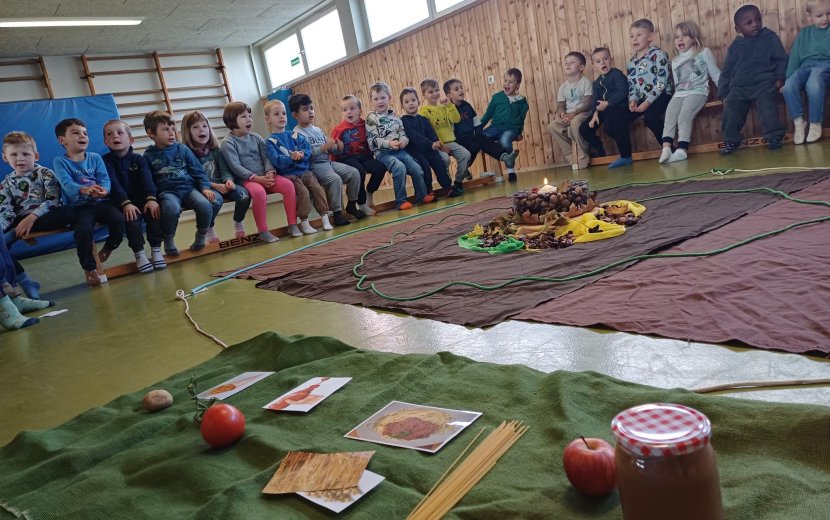 Erntedankzeremonie im Schulkindergarten der Leopolschule Altshausen im Oktober 2025. (Foto: Annika Gaficz)