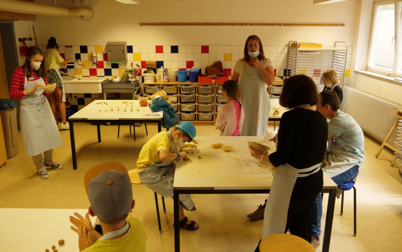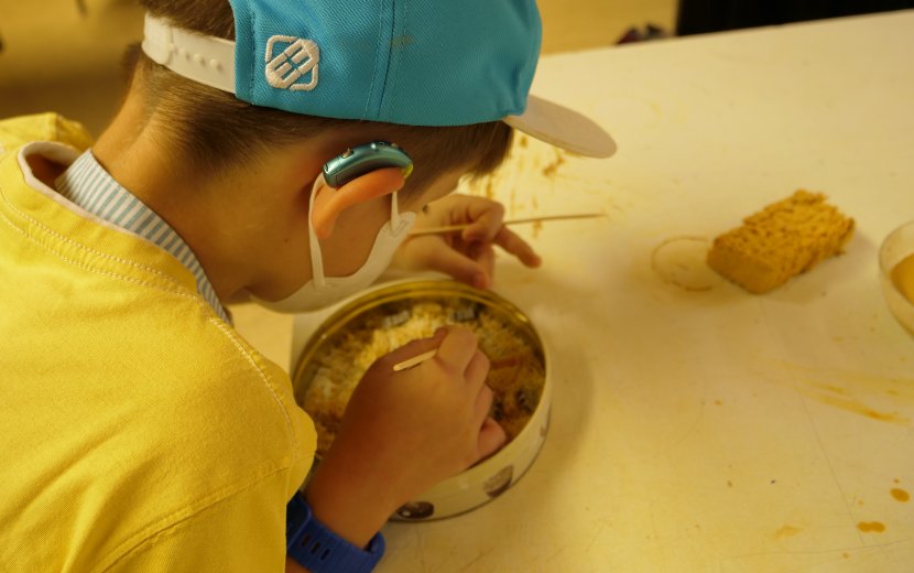 In diesem Jahr fand er zum ersten Mal an der Leopoldschule in Altshausen statt. An diesem Tag treffen sich die Familien mit ihren Kindern, die sonst einzeln in ihren Regelschulen und Regelkindergärten unterstützt werden, dort mit ihrer Hörschädigung klar zu kommen. Und so freuten sich die anwesenden Eltern sichtlich über die tollen Workshops für ihre Kinder, die aus Klettern, Töpferwerkstatt und einem Spiel- und Bastelangebot für die Kleinsten bestanden. Und nutzten die kinderfreie Zeit dafür, den fachlichen und persönlichen Input der EUTB-Beauftragten und selbst betroffenen Ulrike Berger anzuhören und sich intensiv miteinander und untereinander auszutauschen. Anne Armingeon, Koordinatorin der Frühförderung Hören meinte dazu: „Es war toll, dass sich endlich wieder einmal so viele Familien treffen konnten!“
