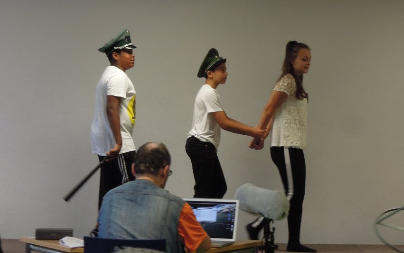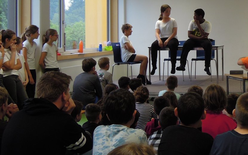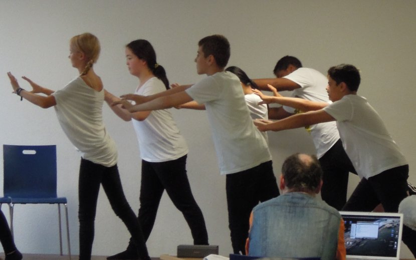 Schülerinnen und Schüler führen ein Tanz-Theater im Sprachheilzentrum Ravensburg auf. | Foto: Anna Möhrle