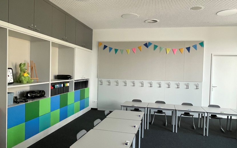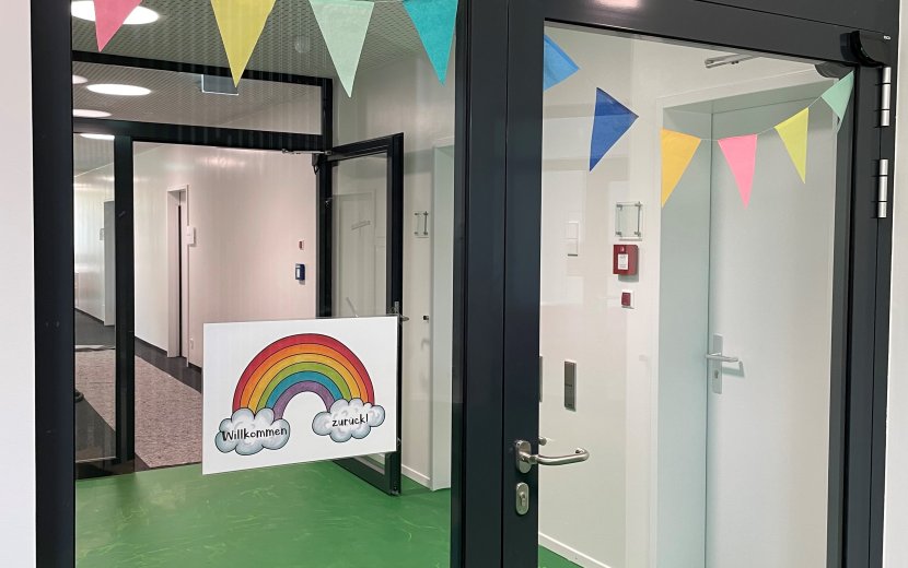 "Wir sind nach den Pfingstferien mit allen Schülerinnen und Schüler gestartet. Das war toll!", erzählt Désirée Korneffel, Abteilungsleitern Grundschule begeistert. Lehrerinnen und Schulkinder genießen gemeinsam die tolle technische Ausstattung im neuen Schulgebäude, die richtig gute Raumakustik und das viele Licht. Ein Highlight ist auch das Aquarium im Eingangsbereich des neuen Gebäudes. "Natürlich hatten wir den Eingang zur Grundschule bunt dekoriert und jedes Kind erhielt einen Wilkommensgruß", so Korneffel weiter. Von dieser Seite steht dem guten Abschluss dieses pandemiebedingt verrückten Schuljahres nun nichts mehr im Wege.