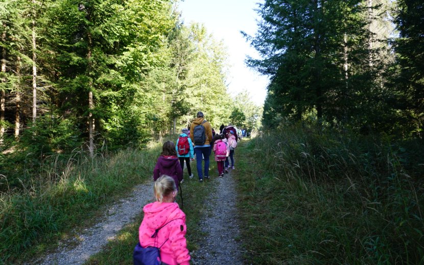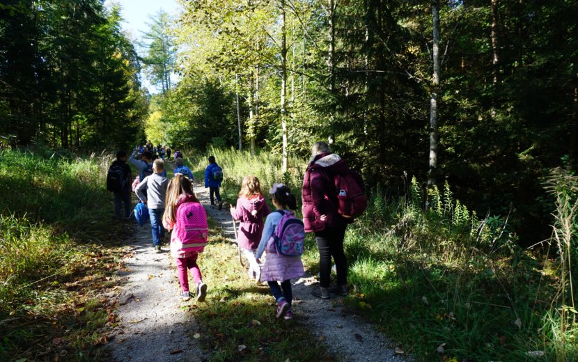 Statt Klassenzimmer Bäume und Wald, statt Zimmerluft herrliche Herbstluft. Sieben Kilometer Fußmarsch und jede Menge zu entdecken.