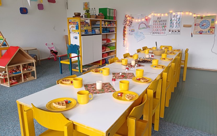 Ein großer bunt geschmückter Baum zierte den Eingangsbereich, es roch nach frisch gebackenen Plätzchen, überall Lichterketten, Sternchen an den Fenstern und Weihnachtlieder ertönten aus allen Gruppenräumen. Die vorweihnachtliche Zeit war nicht zu übersehen.