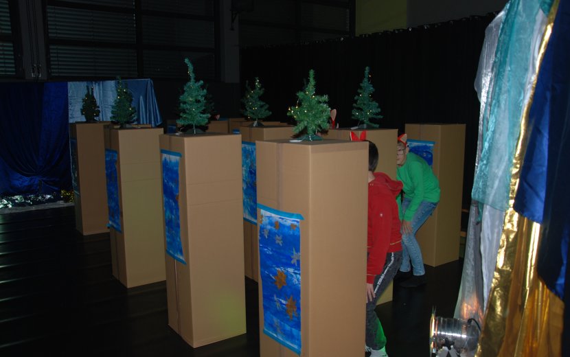 In der liebevoll und aufwändig geschmückten Turnhalle der Schule am Wolfsbühl führten die Grundschulkinder das Theaterstück: "Es klopft bei Wanja in der Nacht" auf. (Foto: Jens Mielke)