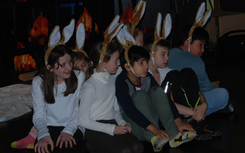 In Anbetracht der vielen mitspielenden Kinder waren im Theaterstück nicht einzelne Tiere sondern ganze Tierfamilien unterwegs. Familie Hase, Familie Fuchs und Familie Bär bewegten sich nacheinander mit tanzenden, jeweiligen typischen Bewegungen auf dazu passende Musik von Pascal Comelade durch den aufgebauten Winterwald. Zudem ließ jedes Tier die Zuschauerinnen und Zuschauer an einem Gedanken wie ‚passt auf, dass ihr nicht in eine Falle tretet‘ , ‚meine Pfoten sind eiskalt‘ oder ‚ich glaube, wir haben uns verlaufen‘ teilhaben. Letztendlich erreichten alle drei Tierfamilien nacheinander Wanjas Haus, der eine Bedingung hat: ‚Ich lasse euch herein, wenn ihr versprecht, dass ihr friedlich seid!‘