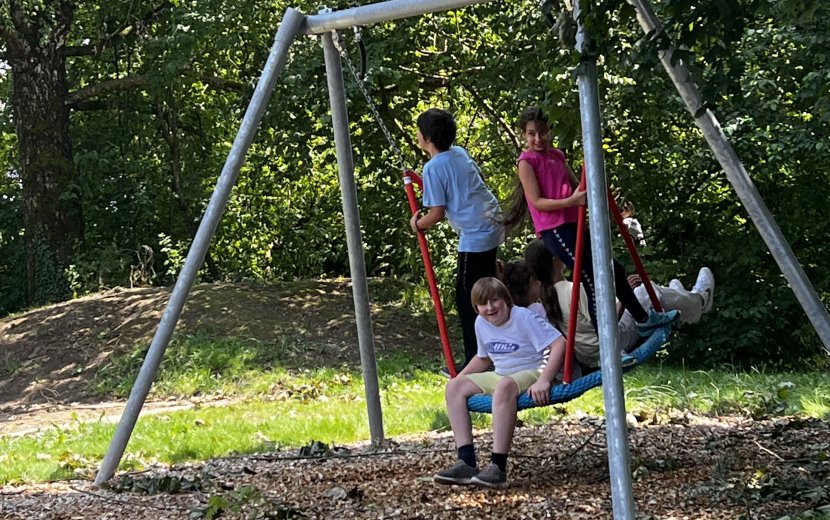 In der Sprachheilschule Arnach waren die neue große Nestschaukel, die Hängematte und das Klettergerüst pünktlich zum Schulfest spielbereit. „Nach der langen Bauphase konnten unsere Kleinsten die Eröffnung kaum erwarten. Die Augen leuchteten, als wir das rot-weiße Absperrband abgemacht haben. Ein ganz herzliches Dankeschön an alle Spender, die das ermöglicht haben“, freut sich die Arnacher Schulleiterin Heidi Doubek.