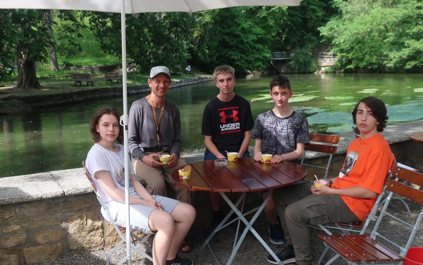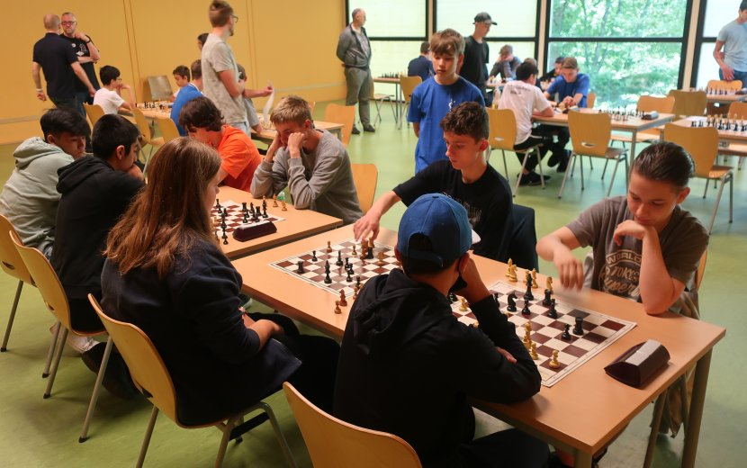 Am Donnerstag, den 19.05.22 ging es dann am Nachmittag endlich los! Die Teilnehmerinnen und Teilnehmer kamen fast aus dem gesamten Bundesgebiet (Dresden, Bielefeld, Ingelheim, Frankfurt - um nur ein paar zu nennen), so dass die einzelnen Mannschaften zum Teil sehr stark aufgestellt waren. Ebenso verfügten die meisten Wettkämpferinnen und Wettkämpfer über eine mehrjährige Praxis beim Schachspielen. Vor und während der einzelnen Schachpartien sollte die Freizeit aber auch nicht zu kurz kommen. Bei der Hinfahrt besuchten wir die Aachquelle, am zweiten Tag den Schluchsee und am dritten Tag erkundeten wir Bonndorf. Zudem organisierten die Ausrichter in der spielfreien Zeit zwei Trainingsstunden mit einem nationalen Meister, ein Simultanturnier (der Nationale Meister spielte an 23 Brettern gegen alle interessierten Jugendlichen) und an einem Tandemturnier. Unsere Schüler beteiligten sich interessiert an allen Angeboten.
