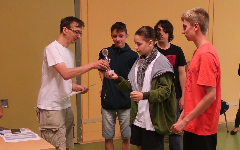 Unsere vier - Noah, Tristan, Paul und Marc - erreichten mit viel Engagement und Kampfgeist einen beachtlichen 5. Platz von elf teilnehmenden Schulen. Zum Schluss erhielten unsere Schüler zwei Pokale (5. Platz und das beste SBBZ). Erster wurde das Schüler – Team der Montessori Schule aus Ingelheim, von dem zwei Schülerinnen alle zehn Partien gewannen.