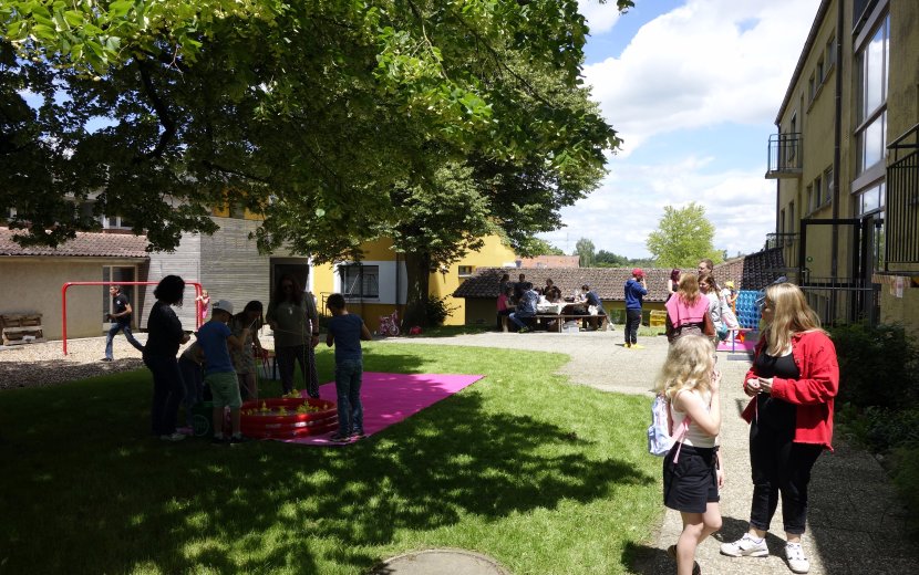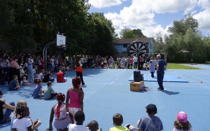 Schon im Vorfeld freuten sich die Kinder und Jugendlichen der Schule am Wolfsbühl auf eine Vielzahl von Spiel- und Mitmachaktionen von Schulkindergarten, Schule und Internat. An den Essensständen wirbelten die Mitarbeitenden Hand in Hand mit Eltern und verköstigten die Schulgemeinde. In einer kurzen Ansprache der Schulleitung wurde das schöne Miteinander betont: „Wir helfen alle zusammen und wir feiern alle zusammen!“ Unterbrochen wurde die Ansprache durch die Kinder der Zirkus-AG der Grundschule, die unter dem Lachen des Publikums begannen, die Bühne zu fegen. Die Tanz-AG heizte danach den Gästen mit einem furiosen Auftritt ein. Die freundliche Witterung sorgte zudem für eine entspannte Atmosphäre auf dem weitläufigen Campus.