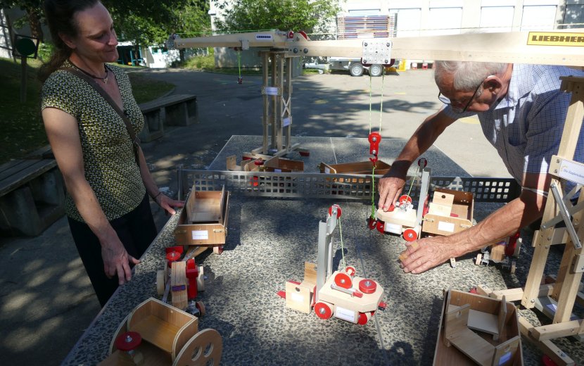 Die Schulkindergärten des Hör-Sprachzentrums der Zieglerschen konnten sich kurz vor den Sommerferien über eine ganz besondere Spende freuen: Max Steinhart, Rentner aus Reutlingen, schenkte ihnen zwei komplette Sets selbst gebautes Holzspielzeug.