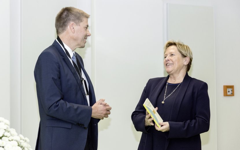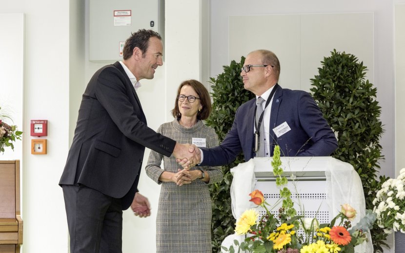 Die Festrede hielt die baden-württembergische Kultusministerin Dr. Susanne Eisenmann. Sie betonte, wie wichtig gute Schulgebäude seien, Raum sei bekanntermaßen der „dritte Pädagoge“. Sie drückte ihren Dank aus, für das „was hier geleistet wurde“ und lobte zudem die Sonderpädagogik in Baden-Württemberg. Das Land hätte an den Sonderpädagogischen Bildungs- und Beratungszentren festgehalten, weil nur so die Eltern auch die Wahl hätten, wo ihre Kinder gefördert werden sollen, und das sei der richtige Weg gewesen. „Wir werden unsere SBBZs stärken“, sagte sie und lobte das Sprachheilzentrum der Zieglerschen mit den Worten: „Sie leben den Weg, den wir für ganz Baden-Württemberg brauchen.“ Sie wünsche sich überall eine Kultur der Kooperation, denn die Generalisten seien auf das Wissen der Experten angewiesen, gerade auch im Bereich der Hör- und Sprachbeeinträchtigungen, die in einer großen Bandbreite vorlägen. „Machen Sie weiter, bleiben Sie ein intensiver, konstruktiver und kritischer Partner“, gab sie den Verantwortlichen am Ende ihrer Rede mit auf den Weg.