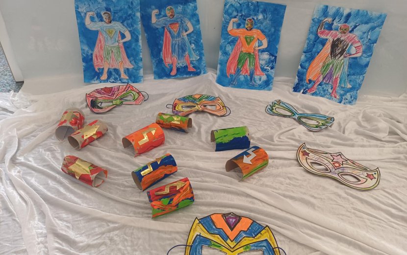 Jedes Kind konnte seine Superkraft entdecken und sein individuelles Superhelden Outfit gestalten. Ausgestattet mit Cape, glitzernder Maske und Armmanschette flitzten am gompigen Donnerstag unsere kleinen Superhelden durch den Kindergarten. Bei spannenden Spielen konnten sie ihre Kräfte unter Beweis stellen. Nach den bestandenen Aufgaben bekamen unsere Helden einen offiziellen Superhelden-Ausweis. Zur Stärkung gab´s abschließend eine große Portion Pommes und jede Menge Bonbons.