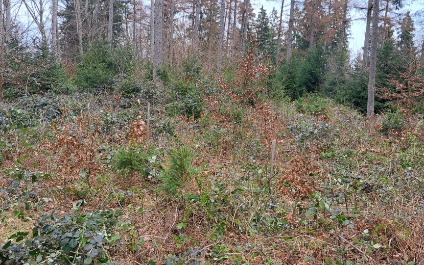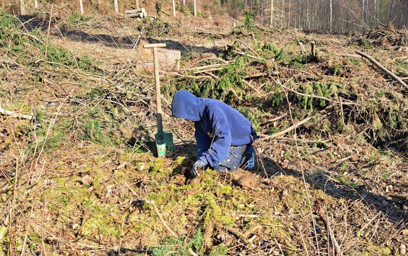In Zusammenarbeit mit der WaldBox (Christian Reich) und dem Forstamt Ravensburg (Christoph David) haben die Schüler aufgeteilt in Gruppen zunächst 75 Bäume gepflanzt. Hierfür wurden gerade Linien gepeilt, Abstände gemessen, Löcher gegraben und die Setzlinge kurz über den Wurzelballen gerade in die Erde gesetzt. Dies erforderte sowohl mathematische Kenntnisse, Raumwahrnehmung und Kraft. Anschließend haben die Schüler mit den Schweizer Gerteln, das ist eine Art Sichel, die zweijährigen Jungbäume von stachligen Brombeerranken und anderem sie überwuchernden Gestrüpp befreit.