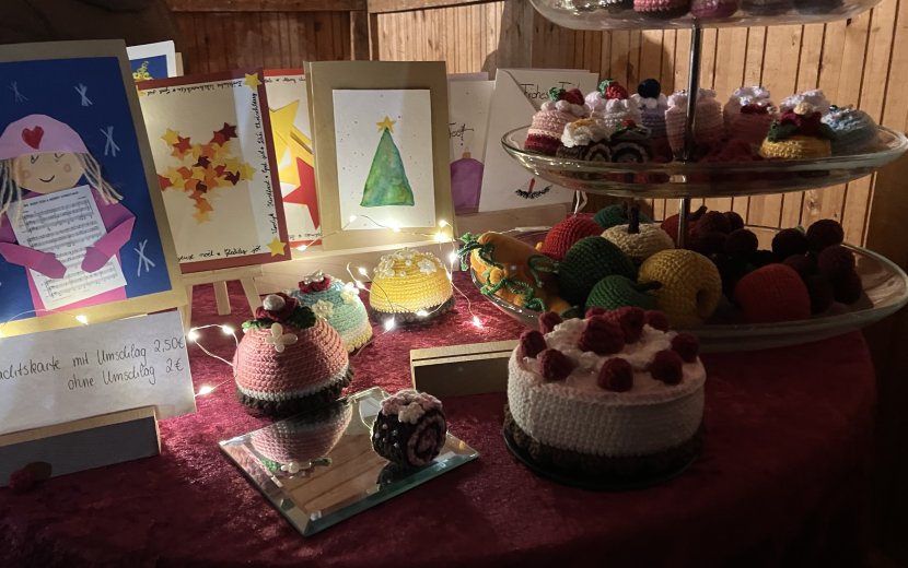 Auch die Eltern und Lehrerinnen haben die Aktion mit zahlreichen Spenden und Plätzchen, die vom Elternbeirat schön verpackt wurden, unterstützt. Am 5. Dezember war es dann so weit, die Hütte auf dem Dorfplatz in Arnach war geschmückt und der Weihnachtsmarkt eröffnet. In mehreren Schichten wurde von Kindern, Eltern und Lehrerinnen das Gebastelte und die Plätzchen verkauft. Das war ein großartiges Miteinander, durch das die Aktion wunderbar gelungen ist.