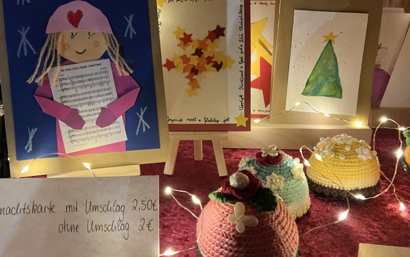 Auch die Eltern und Lehrerinnen haben die Aktion mit zahlreichen Spenden und Plätzchen, die vom Elternbeirat schön verpackt wurden, unterstützt. Am 5. Dezember war es dann so weit, die Hütte auf dem Dorfplatz in Arnach war geschmückt und der Weihnachtsmarkt eröffnet. In mehreren Schichten wurde von Kindern, Eltern und Lehrerinnen das Gebastelte und die Plätzchen verkauft. Das war ein großartiges Miteinander, durch das die Aktion wunderbar gelungen ist.