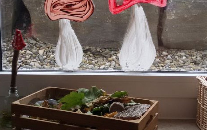 Jeden Freitag gehen wir in den Wald. Dort gibt es viel zu entdecken: einen kleinen »Bach«, eine Hütte aus Zweigen, Schneckenhäuser, Regenwürmer, Käfer und vieles mehr.