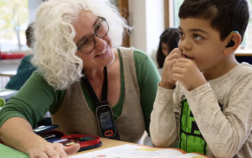 Im Hör-Sprach­zen­trum betreuen wir rund 1.300 Kin­der und Jugend­liche mit Problemen beim Hören und Sprechen in Schul­kinder­gärten und Schulen in der Region Boden­see-Ober­schwaben.