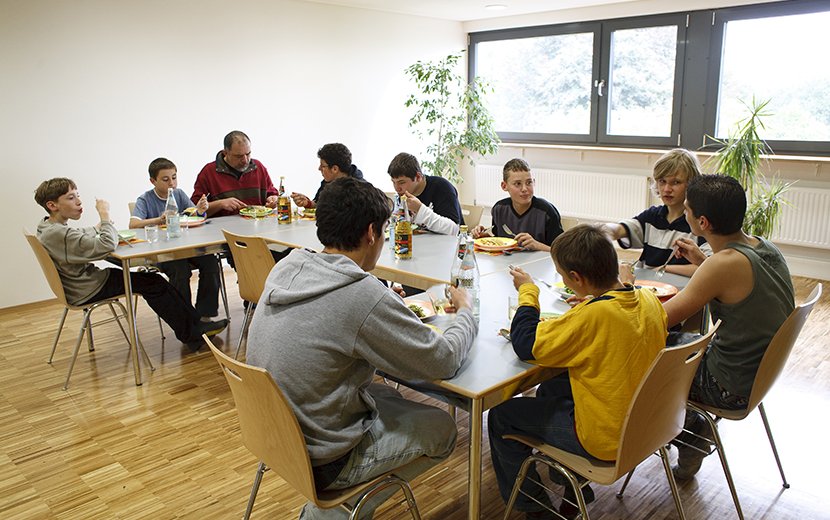 Nein, sie verbringen ihre Mittagspause in ihrer Wohngruppe und haben auch dort vereinbarte Lernzeiten mit ihren Bezugsbetreuern.
