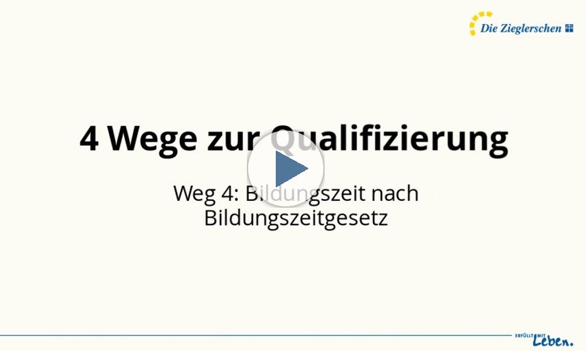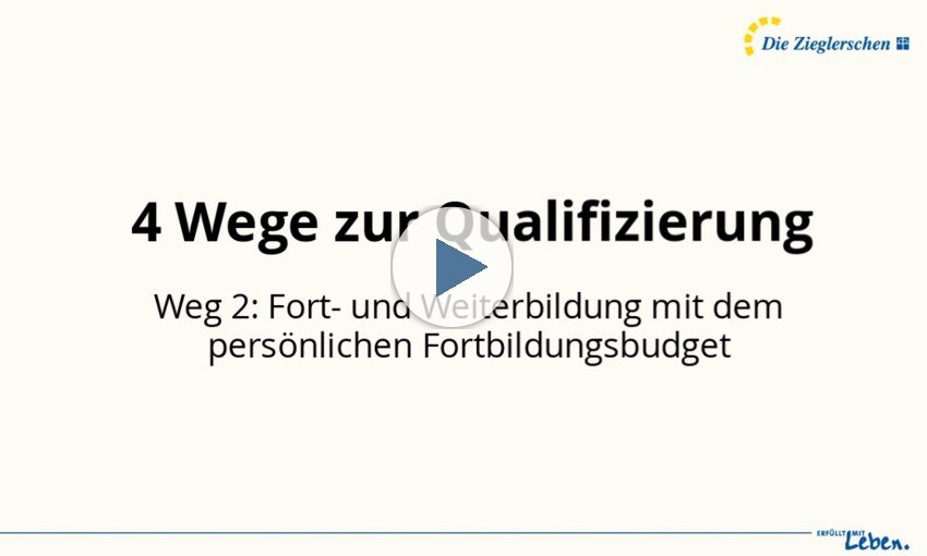 Sie möchten eine Fortbildung besuchen, wissen aber nicht, welche Möglichkeiten Sie haben, wie die Abläufe sind oder welchen Antrag Sie dazu ausfüllen und einreichen müssen? Dann sind Sie hier genau richtig! Schauen Sie sich unsere kleinen Erklär-Videos an und erhalten Sie in Kürze einen Überblick über alle wichtigen Informationen rund um Fort- und Weiterbildungen in den Zieglerschen und den vier Wegen zur Qualifizierung. Viel Spaß!