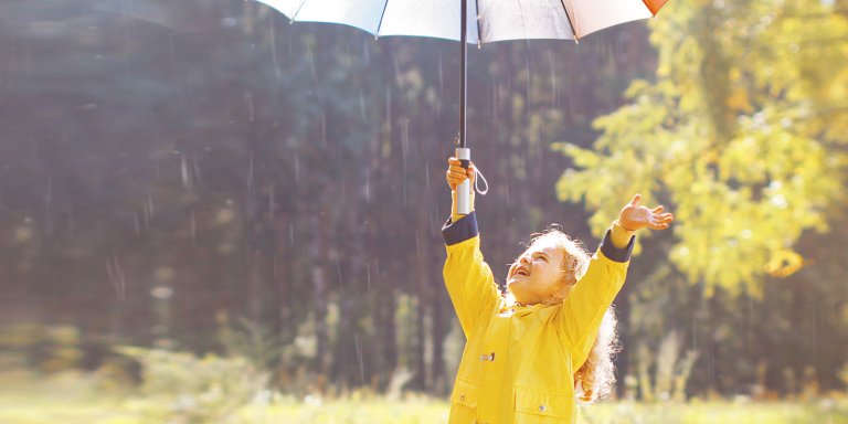 Lisa ist schon den ganzen Tag draußen spielen. Gegen 16 Uhr kommt ein Unwetter auf. Es fängt zu regnen an, zu blitzen und zu donnern. Die Mama macht sich Sorgen. Sie geht Lisa suchen und findet sie auf einer Waldlichtung. Erstaunt beobachtet sie: Jedes Mal wenn es blitzt, schaut Lisa in den Himmel und lächelt. »Aber Lisa, hast Du gar keine Angst vor den Blitzen und dem Donner?« »Nein, Mama, ich muss doch lächeln, wenn der liebe Gott ein Foto von mir macht!« Das dürfen wir glauben: Auch wenn es im Leben blitzt und donnert, wenn schwere Zeiten aufkommen, hat uns Gott im Blick. Macht er ein Foto von uns. Nichts entgeht ihm!