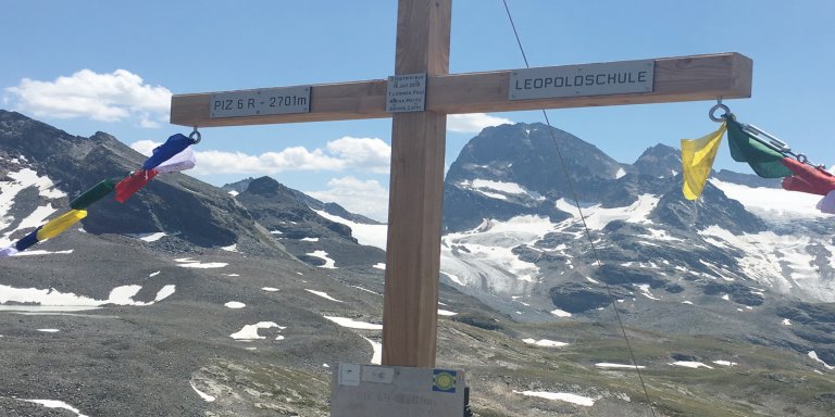 Das Gipfelkreuz auf dem Piz 6R im Silvrettagebiet muss erneuert werden. Schüler der Leopoldschule Altshausen tragen Balken, Material und Werkzeug auf den 2.701 Meter hohen Gipfel in den österreichischen Alpen. Oben wird das Gipfelkreuz aufgerichtet, rechts und links bringen sie bunte Fahnen an. Das ist den Schülern wichtig. Für mich wirft dieses Gipfelkreuz eine sehr interessante Frage auf. Wie passt das zusammen? Das Kreuz als christliches Symbol und tibetische Gebetsfahnen?