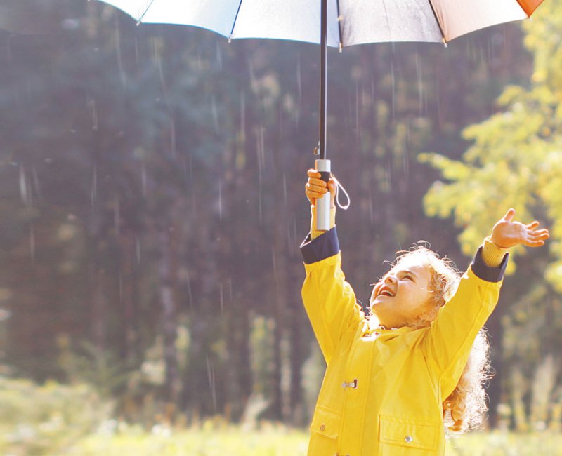 Lisa ist schon den ganzen Tag draußen spielen. Gegen 16 Uhr kommt ein Unwetter auf. Es fängt zu regnen an, zu blitzen und zu donnern. Die Mama macht sich Sorgen. Sie geht Lisa suchen und findet sie auf einer Waldlichtung. Erstaunt beobachtet sie: Jedes Mal wenn es blitzt, schaut Lisa in den Himmel und lächelt.
