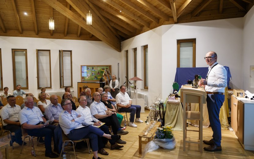 Minister Manfred Lucha dankte den Zieglerschen für ihr jahrzehntelanges Inklusions-Engagement. Es gebe viele Wege der Inklusion, immer müssten jedoch die individuellen Bedarfe der Menschen im Mittelpunkt stehen, so der Minister. „Danke, dass Sie die Inklusion von Innen nach Außen gestalten“, sagte Lucha mit Blick auf Dezentralisierung und das Konzept „Inklusion umgekehrt“. Dieses ist gemeinsam mit der Gemeinde Horgenzell in der Umsetzung. Menschen mit und ohne Behinderung sollen künftig auf dem Gelände der Haslachmühle wohnen und arbeiten. So entstehen am Rande des Mühlengeländes Ein- und Mehrfamilienhäuser. Darüber hinaus kann sich im südwestlichen Neubaugebiet nichtstörendes Gewerbe ansiedeln. Hierfür haben die Zieglerschen die entsprechenden Flächen an die Gemeinde Horgenzell zur weiteren Infrastrukturentwicklung veräußert. Mit der Änderung des Bebauungsplans seien nun auch die formalen Grundlagen gegeben, bestätigte Horgenzells Bürgermeister Volker Restle. Er ist von dem Projekt überzeugt: „Eine Gesellschaft muss sich daran messen lassen, wie sie mit den Schwächsten umgeht.“