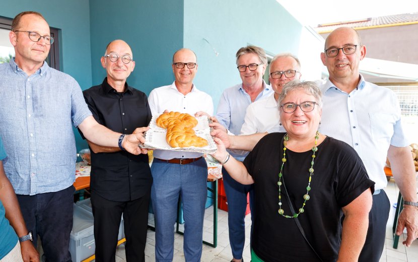 Dies war der Auftakt zu einem großen Fest bei strahlend blauem Himmel und hochsommerlichen Temperaturen: mit feierlichem Gottesdienst, mitgestaltet von den Bewohnern von Haus Buchacker, symbolischer Schlüsselübergabe und buntem Grillfest. Als Einzugsgeschenk hatte Architekt Jürgen Hildebrand einen Grill für gemütliche Abende im Gepäck.
